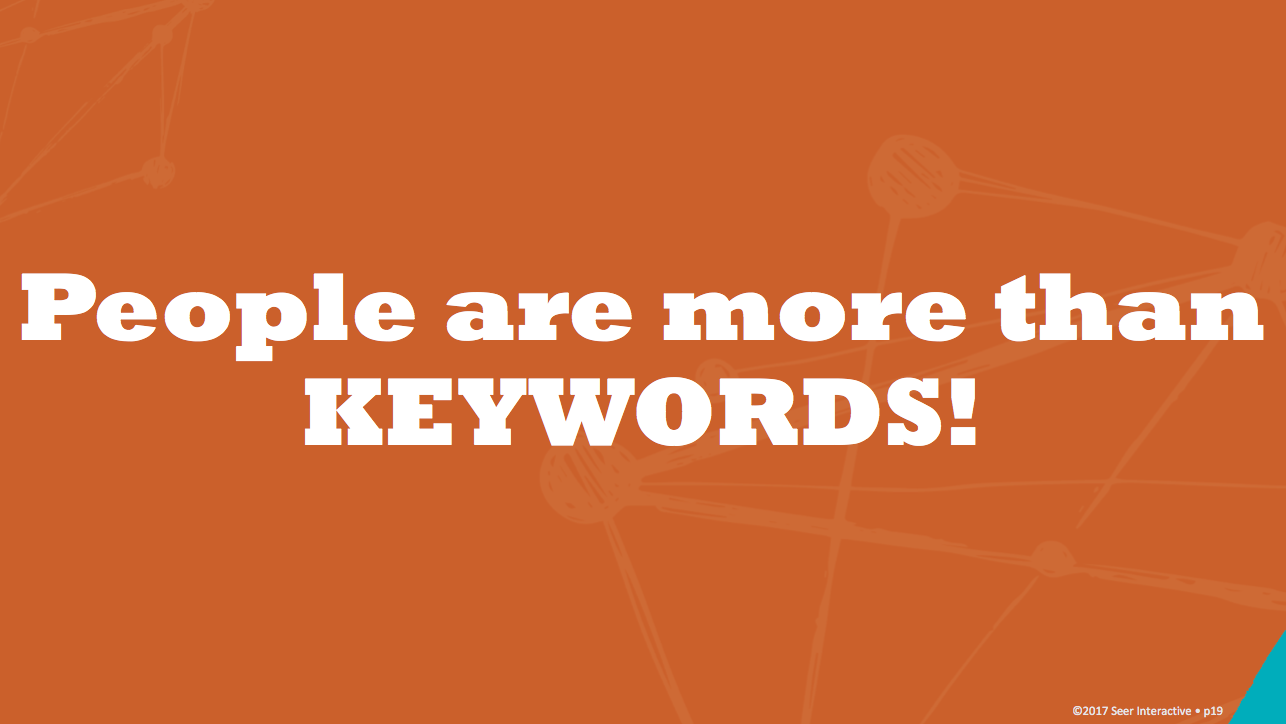 Las personas son más que keywords, y Google lo sabe, por tanto la identificación y uso de la palabra clave correcta no es suficiente. Está empezando a comprender qué sentimos cuando encontramos un contenido, que suele ser la resolución de un problema concreto. El concepto job to be done es cada vez más vigente, donde los contenidos que se generen deben ayudar a cumplir el objetivo del usuario, lo que se traducirá en un resultado de negocio si se conduce de manera correcta.